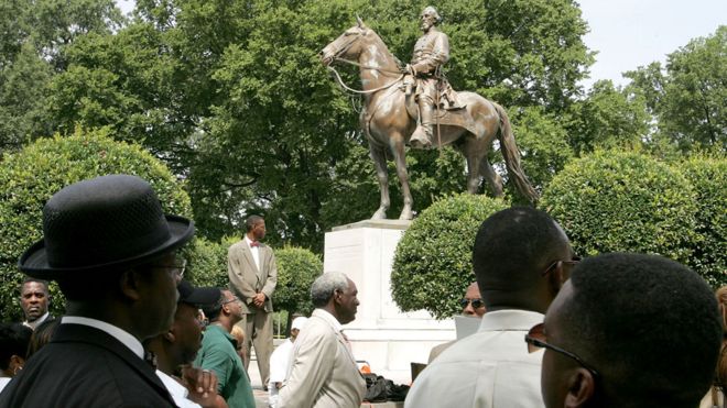The rally in Charlottesville, Virginia, supported by neo-Nazis and white supremacists, was in protest of the removal of a statue of Robert E Lee, a general who had fought for the pro-slavery Confederacy during the US Civil War.