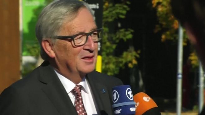 Asked for his view as he arrived at the summit in Tallinn, Mr Juncker replied: "By the end of October we will not have sufficient progress."