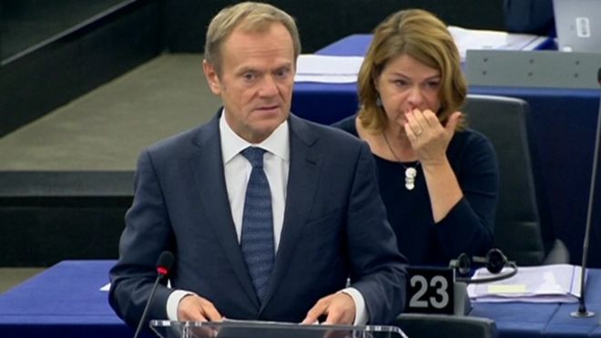 The UK is due to leave the European Union at the end of March 2019 and until Mr Tusk's comments, both sides have sought to avoid talking about victory, defeat and winners and losers in the negotiations.
